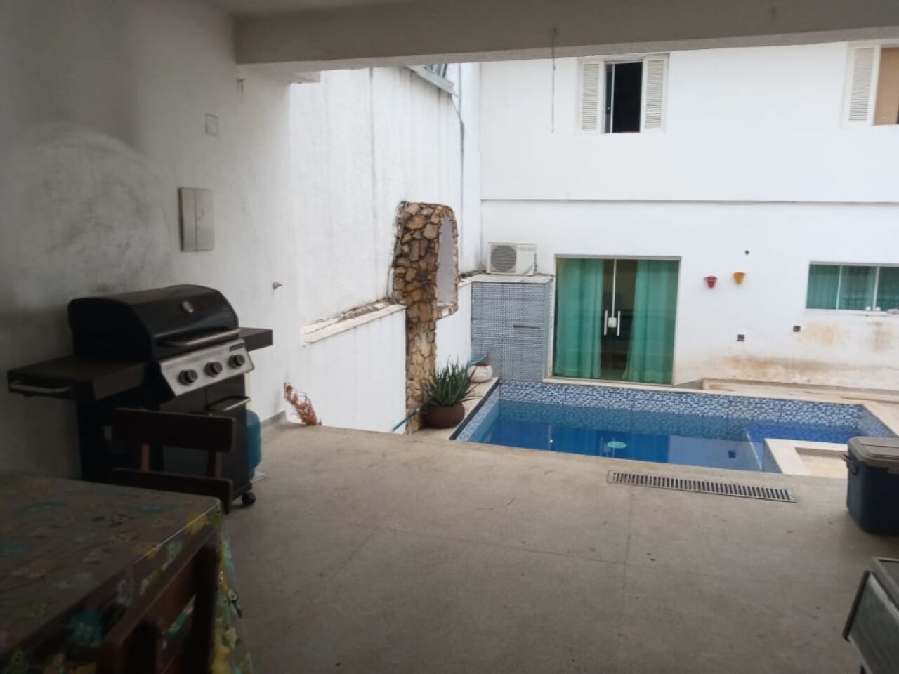 Área externa com piscina; jardim; churrasqueira; sauna; canil; salão de jogos.